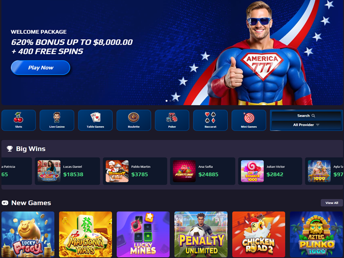 Казино America777, запущенное в октябре 2023 года, привносит патриотический колорит в онлайн-игры, ориентируясь на аудиторию, интересующуюся криптовалютами по всему миру. Благодаря стильной и быстро загружаемой платформе, доступной более чем на 20 языках, оно предлагает как содержательную, так и увлекательную игру, особенно игрокам из США и других стран мира.
