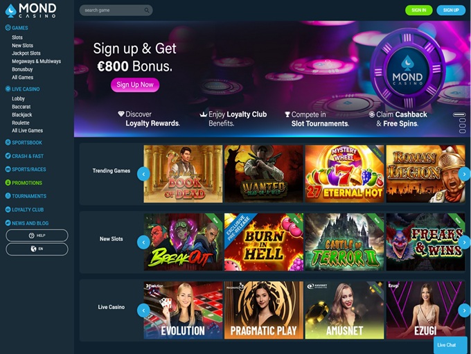 MondCasino — это рай для любого игрока: более 10 000 игр от более чем 60 провайдеров . Более 600 столов, включая Evolution и Pragmatic Live.